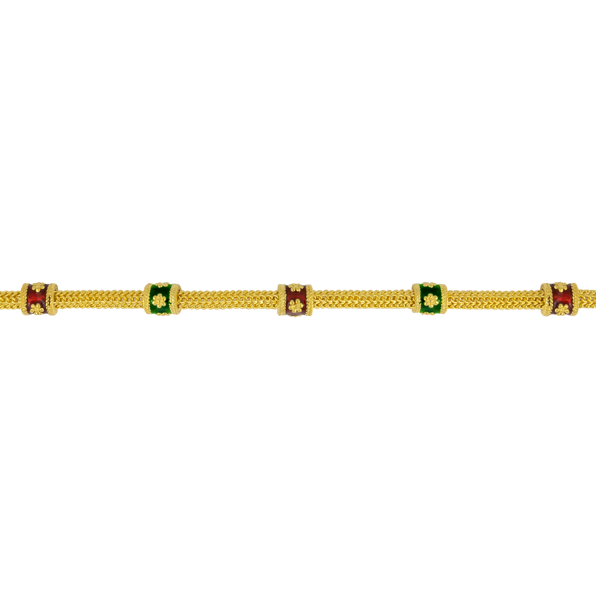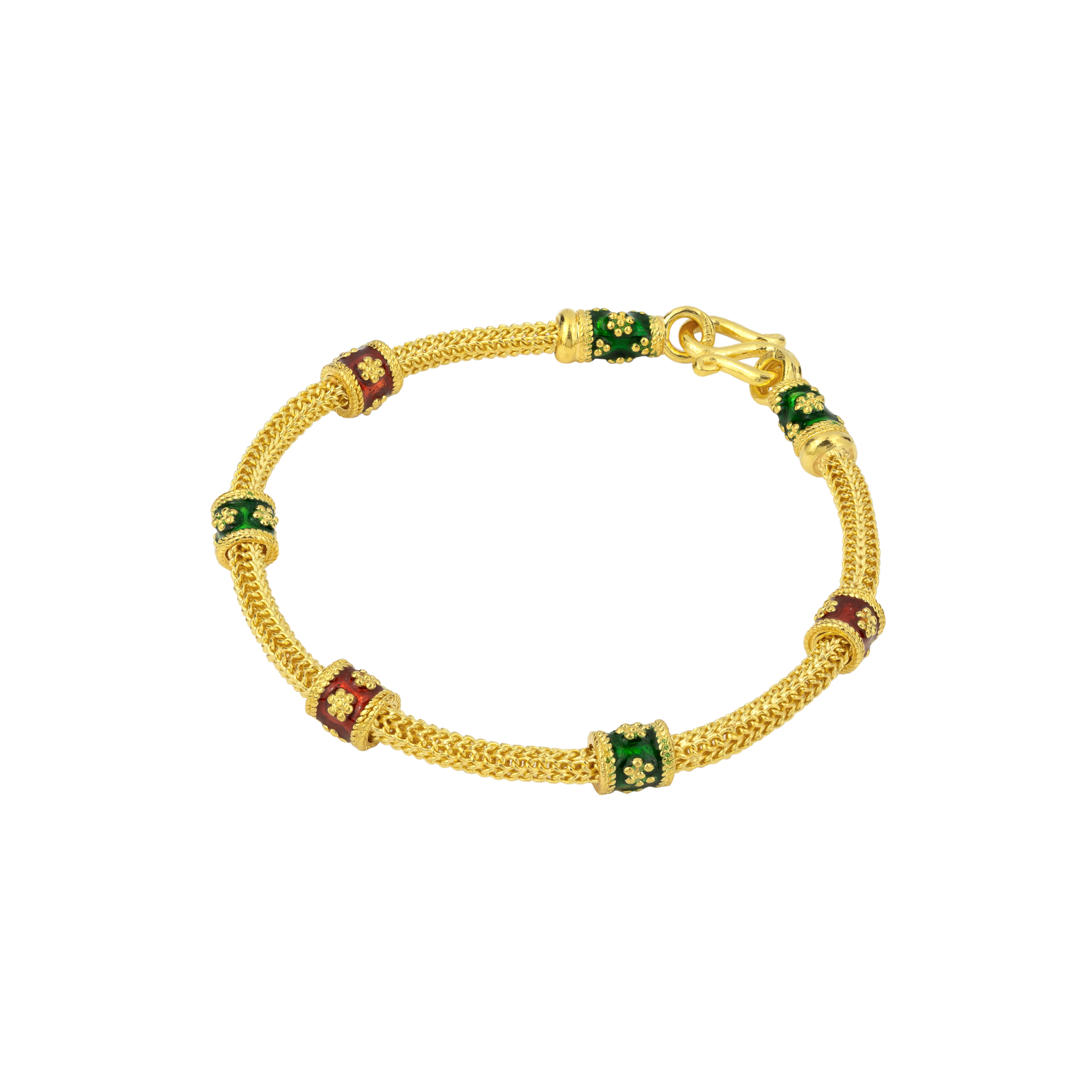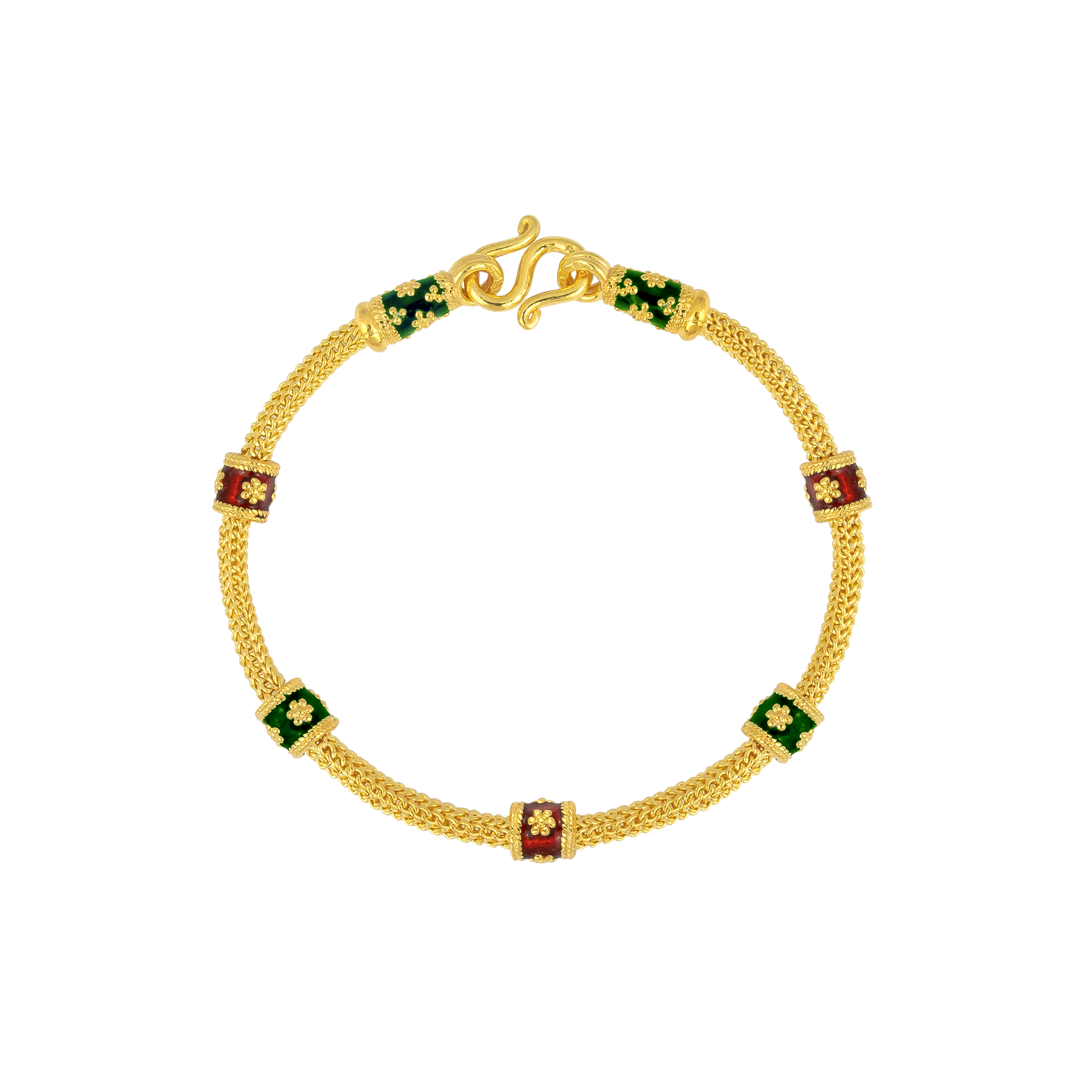 สร้อยข้อมือซีตรองกลมห้าปล้องลงยาสีแดง-เขียว