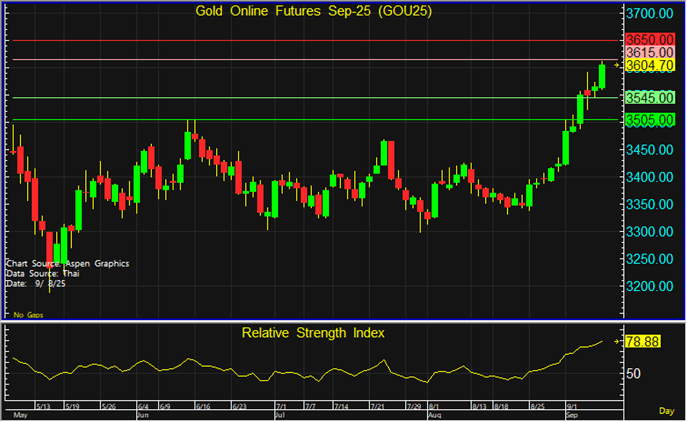 แนวต้าน : 3,615 และ 3,650 ดอลลาร์
