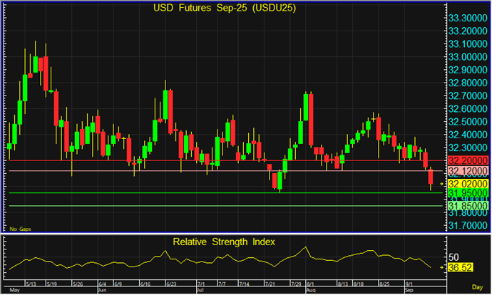 ราคา USDU25 ที่ปรับฐานลง อาจมีการฟื้นตัวในช่วงเช้านี้ จึงแนะนำรอเปิด Short จากแนวต้านที่ระดับ 32.12 บาท โดยมีเป้าหมายทำกำไรที่ระดับ 31.95 ดอลลาร์ และตัดขาดทุนหากราคาทะลุแนวต้านแรกที่ระดับ 32.20 บาทขึ้นไป