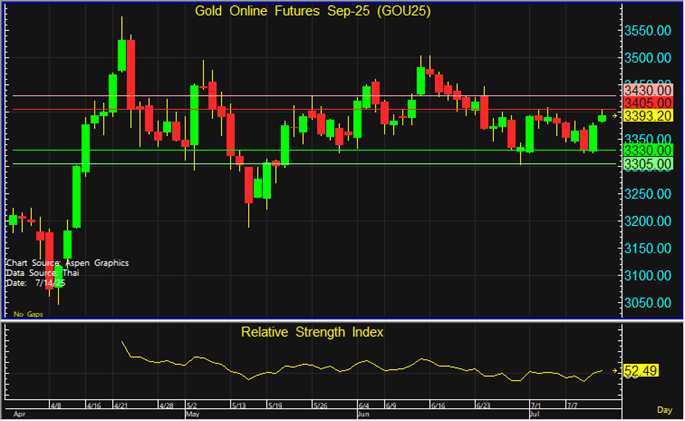 แนวรับ : 3,330 และ 3,305 ดอลลาร์