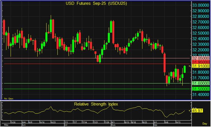ราคา USDU25 ที่ฟื้นตัวขึ้นมา เริ่มเผชิญแรงขายจากแนวต้านที่ระดับ 31.95 บาท จึงแนะนำรอเปิด Short จากแนวต้านดังกล่าว โดยมีเป้าทำกำไรที่ระดับ 31.60 บาท และตัดขาดทุนหากราคาทะลุแนวต้านที่ระดับ 32.05 บาทขึ้นไป
