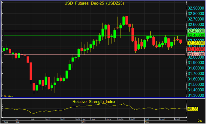 ราคา USDZ25 อาจยังเคลื่อนตัวในกรอบ 32.15-32.40 บาท จึงแนะนำรอเปิด Long จากแนวรับที่ระดับ 32.15 บาท และเปิด Short หากราคาขึ้นทดสอบแนวต้านที่ระดับ 32.40 บาท