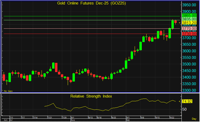 ราคา GOZ25 เผชิญแรงขายจากแนวต้านที่ระดับ 3,835 ดอลลาร์ จึงกลับมาแนะนำรอเปิด Short จากแนวต้านดังกล่าว โดยมีเป้าหมายทำกำไรที่ระดับ 3,770 ดอลลาร์ และตัดขาดทุนหากราคาทะลุแนวต้านที่ระดับ 3,865 ดอลลาร์ขึ้นไป