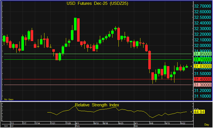 ราคา USDZ25 มีแนวโน้มฟื้นตัวขึ้น แต่อาจผ่านแนวต้านที่ระดับ 31.75 บาทขึ้นไปได้ยาก จึงกลับมาแนะนำรอเปิด Short จากแนวต้านที่ระดับ 31.75 บาท โดยมีเป้าทำกำไรที่ระดับ 31.40 บาท และตัดขาดทุนหากราคาทะลุแนวต้านที่ระดับ 31.85 บาทขึ้นไป