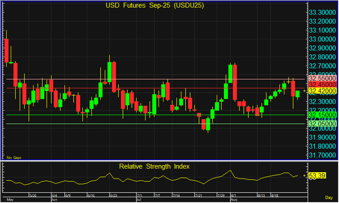 USDU25 อาจยังคงแกว่งตัวในกรอบ 32.15-32.45 บาท จึงแนะนำเปิด Short หากราคาขึ้นทดสอบกรอบบน และเปิด Long หากราคาลงทดสอบกรอบล่าง