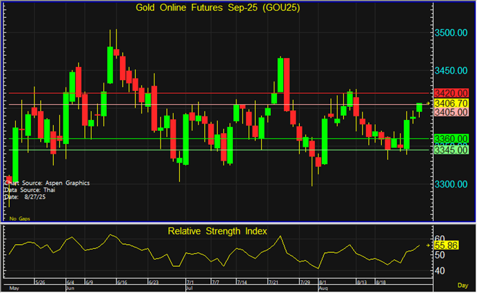 GOU25 เริ่มปรับฐานลงในช่วงเช้า แต่ยังคงแนะนำรอเปิด Short จากแนวต้านที่ระดับ 3,405 ดอลลาร์ โดยมีเป้าหมายทำกำไรที่ระดับ 3,360 ดอลลาร์ และตัดขาดทุนหากราคาทะลุแนวต้านที่ระดับ 3,420 ดอลลาร์ขึ้นไป