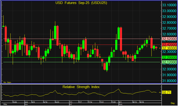 ราคา USDU25 เริ่มย่อตัวลงจากแนวต้านสำคัญที่ 32.42 บาทลงมา แต่ยังคงแนะนำรอเปิด Short จากแนวต้านดังกล่าวเช่นเดิม โดยมีเป้าทำกำไรที่ระดับ 32.20 บาท และตัดขาดทุนหากราคาทะลุแนวต้านที่ระดับ 32.52 บาทขึ้นไป