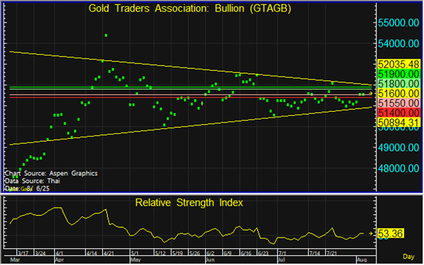 ราคาทองในประเทศอยู่ในระยะ Sideway ในกรอบแคบจากการที่ทองโลกพักฐานลง ขณะที่ค่าเงินบาทยังคงแข็งค่า จึงแนะนำเข้าซื้อสะสมแนวรับที่ระดับ 51,550 บาท และขายทำกำไรหากราคาทดสอบแนวต้านที่ 51,800 บาท แต่หากราคาหลุดแนวรับที่ 51,400 บาท ลงไป แนะนำขายตัดขาดทุน