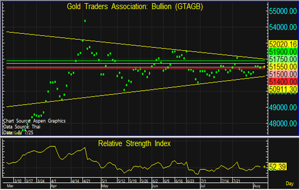 แนะนำเข้าซื้อสะสมแนวรับที่ระดับ 51,500 บาท และขายทำกำไรหากราคาทดสอบแนวต้านที่ 51,750 บาท แต่หากราคาหลุดแนวรับที่ 51,400 บาท ลงไป แนะนำขายตัดขาดทุน