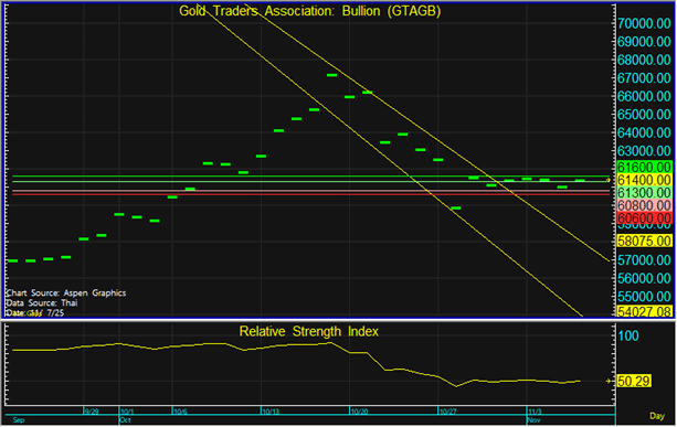 ราคาทองในประเทศมีการฟื้นตัวขึ้นตามทองโลก ในขณะที่ค่าเงินบาทแข็งค่า จึงแนะนำทยอยขายตามแนวต้านที่ระดับ 61,300 และทยอยซื้อตามแนวรับที่ 60,800 บาท แต่หากราคาหลุดแนวรับที่ 60,600 บาท ลงไป แนะนำขายตัดขาดทุน