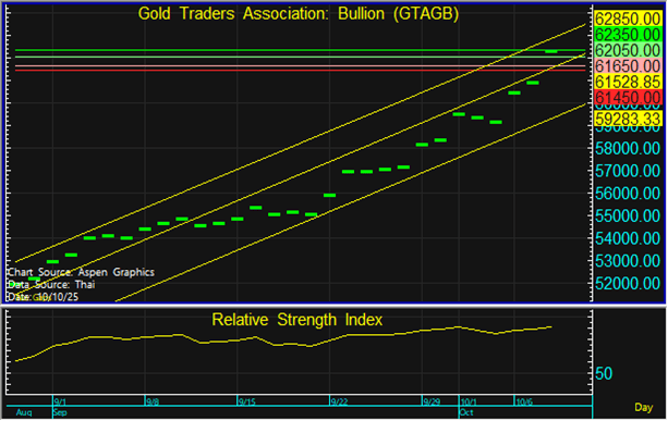 ราคาทองในประเทศเข้าสู่ระยะปรับฐานลงตามทองโลก ในขณะที่ค่าเงินบาทอ่อนค่าเป็นวันที่ 4 จึงแนะนำซื้อสะสมตามแนวรับที่ 61,650 และขายทำกำไรตามแนวต้านที่ 62,050 บาท แต่หากราคาหลุดแนวรับถัดไปที่ 61,450 บาท แนะนำขายตัดขาดทุน