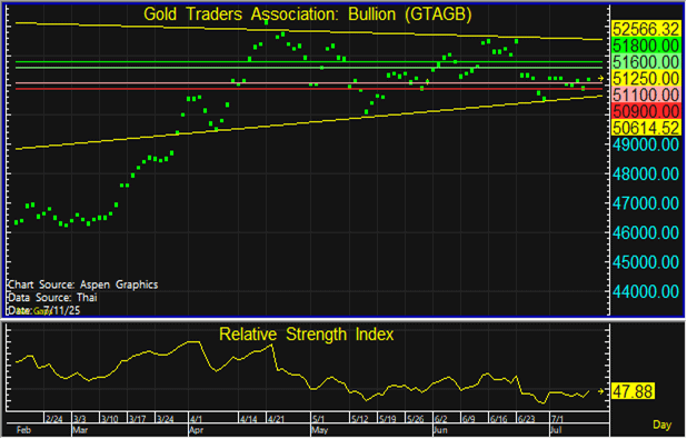 ราคาทองในประเทศมีการแกว่งตัวตามทองโลก ในขณะที่ค่าเงินบาทยังคงอ่อนค่า แนะนำรอเข้าซื้อสะสมแนวรับที่ระดับ 51,100 บาท และขายทำกำไรหากราคาทดสอบแนวต้านที่ 51,600 บาท แต่หากราคาหลุดแนวรับที่ 50,900 บาทลงไป แนะนำขายตัดขาดทุน