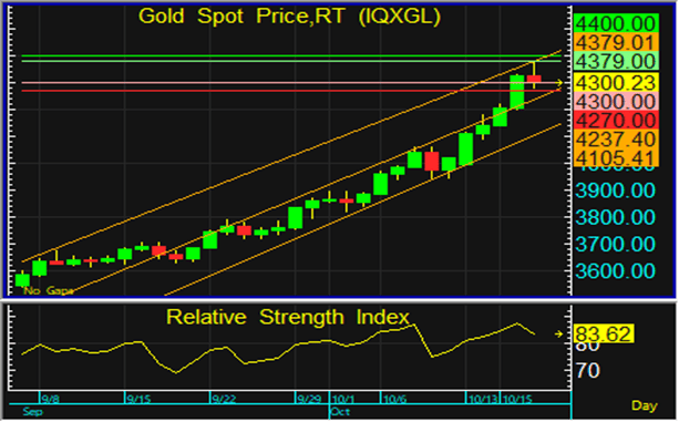 ทองโลกอยู่ในระยะขาขึ้น แต่ในระยะสั้นมีปรับตัวลงทดสอบแนวรับบริเวณ 4,300-4,270 ดอลลาร์ และอาจมีการฟื้นตัวกลับขึ้นในภายหลัง จึงประเมินว่า หากไม่หลุดแนวรับดังกล่าวลงไป ทองโลกอาจปรับตัวขึ้นทดสอบแนวต้านที่ 4,379 ดอลลาร์ แต่หากหลุดแนวรับที่ 4,270 ดอลลาร์ ลงไป อาจเข้าสู่ระยะปรับฐานลง