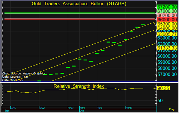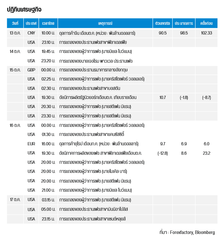 ทองโลกได้มีการปรับตัวขึ้น จากการที่กองทุน SPDR ซื้อทองคำ 12.02 ตัน รวมสุทธิ 1,034.62 ตัน และทางฝั่งดัชนีเงินดอลลาร์ (DXY) ได้ปรับตัวเป็นวันที่ 3 สู่ระดับ 98.33 จาก 99.3 หน่วย อีกทั้งบอนด์ยีลด์สหรัฐฯ อายุ 10 ปี ได้ปรับตัวลงเป็นวันที่ 4 สู่ระดับ 3.97% จาก 4.13% สืบเนื่องมาจาก นายสตีเฟน มิแรน ผู้ว่าการเฟดคนใหม่จากการแต่งตัวโดยปธน.ทรัมป์ ได้กล่าวว่า ตนได้สนับสนุนให้เฟดลดดอกเบี้ย 0.5% ในการประชุม FOMC ในวันที่ 28-29 ต.ค. จากความตึงเครียดทางการค้าที่เป็นความเสี่ยงเชิงลบทางเศรษฐกิจ ในขณะที่นายเจอโรม พาวเวล ประธานเฟด ได้ส่งสัญญาณว่า เฟดอาจลอกเบี้ย 0.25% ในการประชุม FOMC ครั้งนี้ จากภาวะตลาดแรงงานที่ชะลอตัวและอัตราการว่างงานที่สูงขึ้น อย่างไรก็ตาม นาย Michael Widmer หัวหน้าฝ่ายวิจัยสินค้าโภคภัณฑ์ของ Bank Of America ได้แสดงถึงความกังวลที่กองทุน ETF ทองคำที่มีเงินไหลเข้าเพิ่มขึ้นถึง 880% ในเดือนก.ย. 2568 เมื่อเทียบกับ ก.ย. 2567 ซึ่งเป็นระดับที่สูงผิดปกติและไม่มีความยั่งยืน ส่งผลให้ทองคำอาจตามมาด้วยการปรับฐานลงในภายหลัง ในขณะที่นายสก๊อต เบสเซนต์ ได้แสดงถึงความเป็นไปได้ที่จะขยายการพักการจัดเก็บภาษีนำเข้าสินค้าจีนออกไปอีกนานกว่า 3 เดือน จากเดิมที่จะสิ้นสุดลงในวันที่ 10 พ.ย. หากจีนยุติแผนการควบคุมการส่งออกที่เข้มงวดสำหรับแร่หายาก