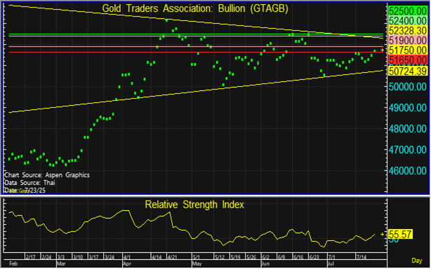ราคาทองในประเทศเป็นขาขึ้นตามทองโลก แต่ค่าเงินบาทยังแข็งค่าต่อเนื่อง จึงแนะนำรอเข้าซื้อสะสมแนวรับที่ระดับ 51,900 บาท และขายทำกำไรหากราคาทดสอบแนวต้านที่ 52,400 บาท แต่หากราคาหลุดแนวรับที่ 51,650 บาทลงไป แนะนำขายตัดขาดทุน