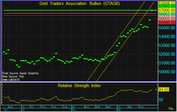 แนะนำเข้าซื้อสะสมแนวรับที่ระดับ 56,650 บาท และขายทำกำไรหากราคาทดสอบแนวต้านที่ 56,950 บาท แต่หากราคาหลุดแนวรับที่ 56,400 บาท แนะนำขายตัดขาดทุน