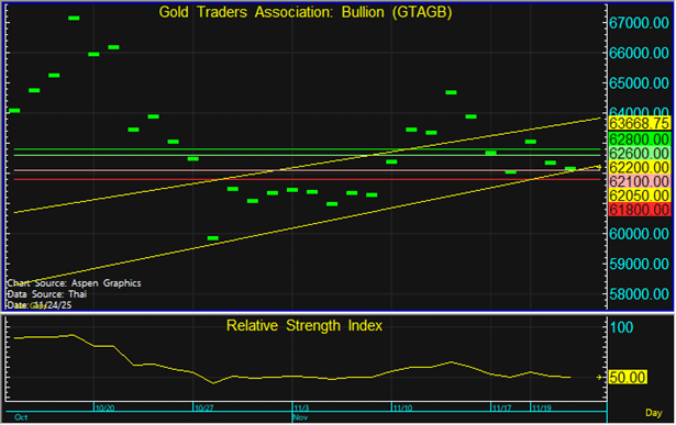 ราคาทองในประเทศมีการ Sideway ตามทองโลกและค่าเงินบาท จึงแนะนำทยอยขายตามแนวต้านที่ระดับ 62,600 และทยอยซื้อตามแนวรับที่ 62,100 บาท แต่หากราคาหลุดแนวรับที่ 61,800 บาท ลงไป แนะนำขายตัดขาดทุน