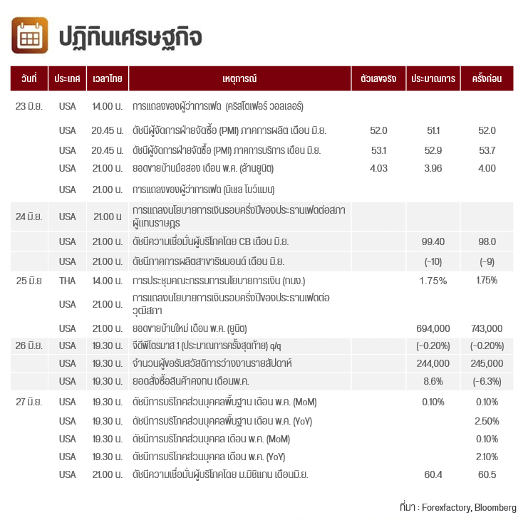 เวลา 14.00น. ติดตามการประชุมคณะกรรมการนโยบายการเงิน (กนง.) และเวลา 21.00 น. มีการแถลงนโยบายการเงินรอบครึ่งปีของประธานเฟดต่อวุฒิสภา และ สหรัฐฯ เตรียมเผยตัวเลขยอดขายบ้านใหม่ เดือน พ.ค.