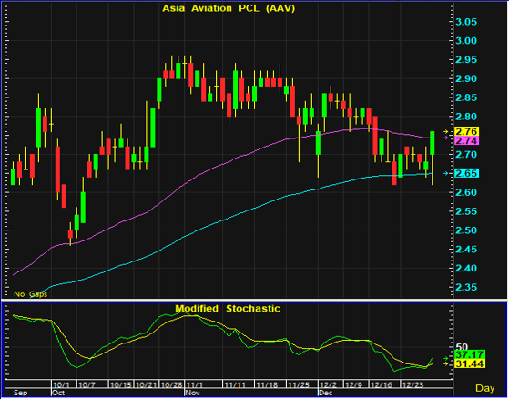 ราคาหุ้น AAV อ่อนตัวลงในระหว่างวัน แต่แรงซื้อที่มีเข้ามามากจนสามารถกลับขึ้นมาปิดที่จุดสูงสุดของวัน การเคลื่อนไหวทางเทคนิคจึงยังมีแนวโน้มฟื้นตัว โดยมีแนวรับสำหรับเปิดสถานะซื้ออยู่ที่ 2.7-2.72 บาท และมีจุดขายตัดขาดทุนอยู่ที่ 2.68 บาท