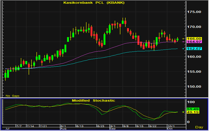 ราคาหุ้น KBANK กลับลงมาเคลื่อนไหวใกล้แนวรับที่คาดว่าจะมีการดีดตัวทางเทคนิคบริเวณ 164.5-165 บาท หากในระหว่างวันสามารถยืนเหนือแนวรับนี้ แนะนำเปิดสถานะซื้อเก็งกำไร และมีจุดขายตัดขาดทุนอยู่ที่ 164 บาท
