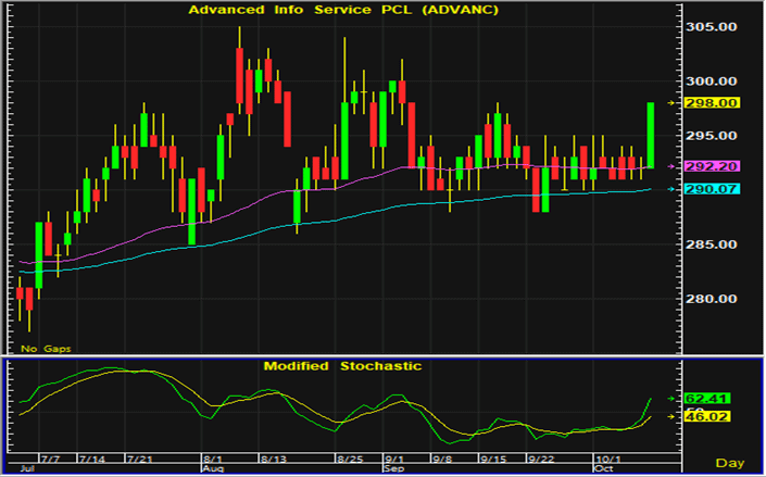 ราคาหุ้น ADVANC ดีดตัวขึ้นมาปิดที่จุดสูงสุดของวัน และมีสัญญาณการฟื้นตัวทางเทคนิคเกิดขึ้น การเก็งกำไรฝั่งซื้อแนะนำเปิดสถานะใกล้แนวรับบริเวณ 295-296 บาท และมีจุดขายตัดขาดทุนอยู่ที่ 293 บาท