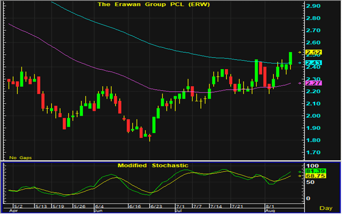 ราคาหุ้น ERW ปิดตลาดที่จุดสูงสุดของวัน และกลับมาเคลื่อนไหวในทิศทางฟื้นตัว ในระหว่างวันหากราคาปรับตัวลงเข้าใกล้แนวรับบริเวณ 2.44-2.46 บาท แนะนำเปิดสถานะซื้อ และมีจุดขายตัดขาดทุนอยู่ที่ 2.4 บาท