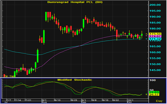 ราคาหุ้น BH แกว่งตัวแคบใกล้แนวรับสำคัญทางเทคนิคบริเวณ 173.5-174 บาท หากยังไม่ลงไปปิดต่ำกว่าแนวรับนี้ คาดว่าจะมีการดีดตัวเกิดขึ้น และแนะนำเปิดสถานะซื้อเก็งกำไร โดยมีจุดขายตัดขาดทุนอยู่ที่ 172 บาท