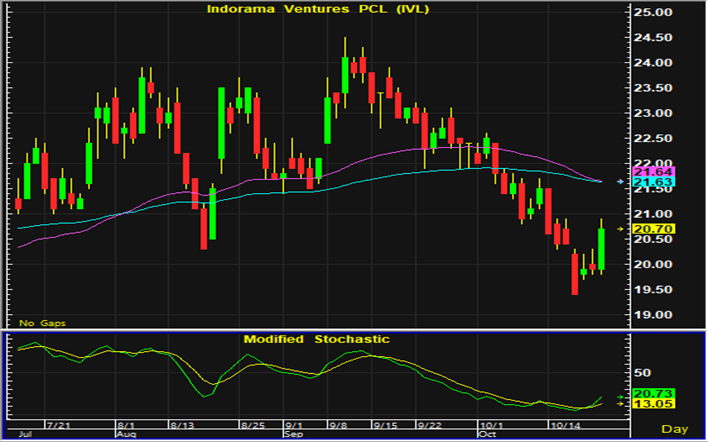 ราคาหุ้น IVL มีสัญญาณซื้อทางเทคนิคเกิดขึ้นในการซื้อขายต้นสัปดาห์ ก่อนที่จะมีแรงซื้อเข้ามามากในการซื้อขายวันพุธ การเคลื่อนไหวของราคาหุ้นในระยะนี้จึงยังมีแนวโน้มฟื้นตัว โดยมีแนวรับสำหรับเปิดสถานะซื้ออยู่ที่ 20.5-20.6 บาท และมีจุดขายตัดขาดทุนอยู่ที่ 20.3 บาท