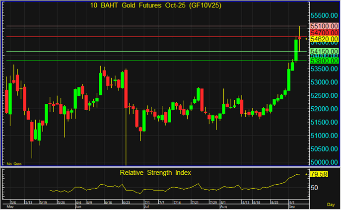 ช่วงเช้าราคา GF10V25 เริ่มย่อตัวลง แต่ยังแนะนำรอเปิด Short จากแนวต้านที่ระดับ 54,700 บาท โดยมีเป้าหมายทำกำไรที่ระดับ 54,150 บาท และตัดขาดทุนหากราคาทะลุแนวต้านที่ระดับ 55,100 บาทขึ้นไป