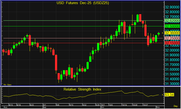 ราคา USDZ25 พยายามฟื้นตัวขึ้นอีกครั้ง จึงกลับมาแนะนำรอเปิด Short จากแนวต้านที่ระดับ 32.50 บาท โดยมีเป้าหมายทำกำไรที่ระดับ 32.25 บาท และตัดขาดทุนหากราคาทะลุแนวต้านที่ 32.62 บาทขึ้นไป
