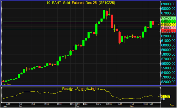 ราคา GF10Z25 เผชิญแรงขายจากแนวต้านสำคัญที่ระดับ 65,250 บาท แต่ยังแนะนำรอเปิด Short จากแนวต้านที่ระดับ 64,850 บาท โดยมีเป้าทำกำไรที่ระดับ 64,000 บาท และตัดขาดทุนหากราคาทะลุแนวต้านที่ระดับ 65,250 บาทขึ้นไป