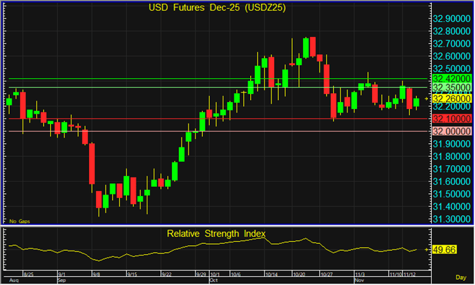 ราคา USDZ25 อาจยังเคลื่อนตัวในกรอบ 32.08-32.35 บาท จึงแนะนำรอเปิด Long จากแนวรับที่ระดับ 32.08 บาท และเปิด Short หากราคาขึ้นทดสอบแนวต้านที่ระดับ 32.35 บาท