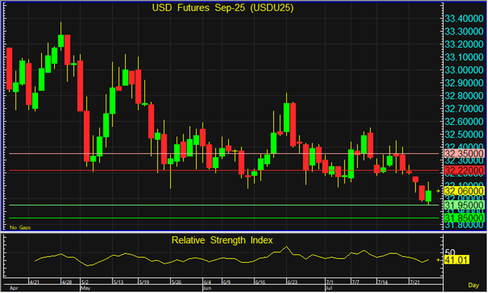 USDU25 มีการปรับฐาน จนเริ่มหลุดแนวรับสำคัญลงมา แต่ประเมินว่าราคาอาจยังคงซื้อขายในกรอบ 31.95-32.22 บาท จึงยังคงแนะนำรอเปิด Short จากบริเวณกรอบบน และรอเปิด Long จากบริเวณกรอบล่าง