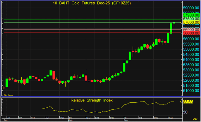แนวต้าน : 57,600 และ 57,900 บาท