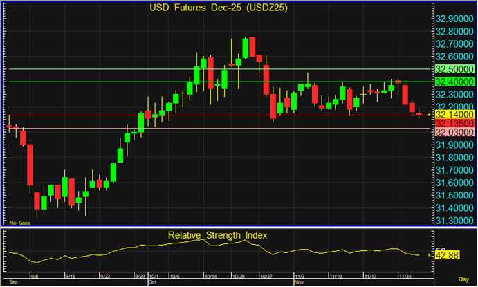 ราคา USDZ25 ย่อตัวลงทดสอบแนวรับสำคัญที่ระดับ 32.13 บาท จึงแนะนำรอเปิด Long จากแนวรับดังกล่าว โดยมีเป้าหมายทำกำไรที่ระดับ 32.40 บาท และตัดขาดทุนหากราคาหลุดแนวรับที่ระดับ 32.03 บาทลงไป