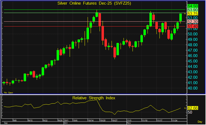ราคา SVFZ25 ฟื้นตัวขึ้นทดสอบแนวต้านสำคัญที่ระดับ 53.90 ดอลลาร์ จึงแนะนำรอเปิด Short จากแนวต้านดังกล่าว โดยมีเป้าทำกำไรที่ระดับ 52.30 ดอลลาร์ และตัดขาดทุนหากราคาทะลุแนวต้านที่ระดับ 54.50 ดอลลาร์ขึ้นไป