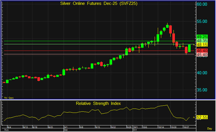 แม้ราคา GF10Z25 จะฟื้นตัวขึ้นจากแนวรับสำคัญขึ้นมาได้ แต่ยังแนะนำรอเปิด Short จากแนวต้านที่ระดับ 61,900 บาท โดยมีเป้าทำกำไรที่ระดับ 60,600 บาท และตัดขาดทุนหากราคาทะลุแนวต้านที่ระดับ 62,400 บาทขึ้นไป