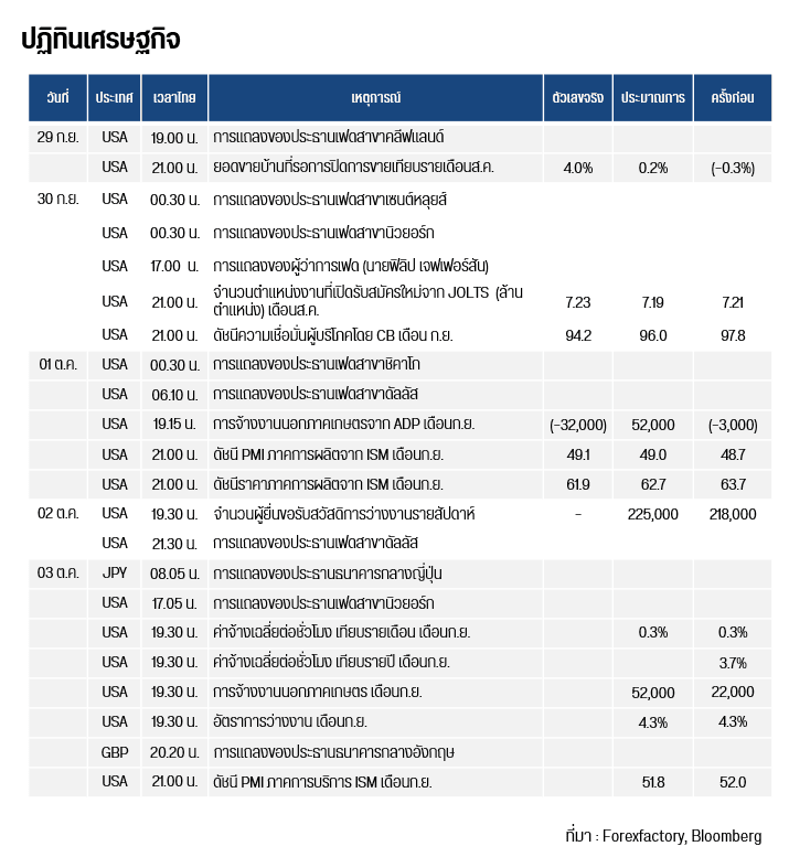 ทองโลกมีการฟื้นตัวขึ้นในกรอบแคบ จากการที่ดัชนีเงินดอลลาร์ (DXY) ยังคงทรงตัวอยู่ในบริเวณ 97.7 หน่วย อีกทั้งบอนด์ยีลด์สหรัฐฯ อายุ 10 ปีได้เริ่มมีแนวโน้มฟื้นตัวขึ้นในวันเดียวกัน สู่ระดับ 4.10% จากเดิมที่ 4.08% หลังจากพักตัวลงมาได้ 2 วัน สืบเนื่องมาจากหน่วยงานฟิทช์ เรทติ้งส์ หน่วยงานจัดอันดับเครดิตระหว่างประเทศระบุว่า ภาวะปิดทำการของรัฐบาลสหรัฐที่กำลังดำเนินอยู่ในขณะนี้อาจไม่ส่งผลกระทบต่ออันดับความน่าเชื่อถือของประเทศในระยะใกล้ อีกทั้งฟิทช์ยังได้คาดการณ์ว่าการขาดดุลงบประมาณของสหรัฐฯ โดยรวมจะลดลงมาอยู่ที่ 6.8% ของ GDP ในปี 2025 จากระดับ 7.7% ในปี 2024 จากรายได้ภาษีศุลกากรที่พุ่งสูงขึ้น อย่างไรก็ตาม สำนักข่าวรอยเตอร์ รายงานว่าทุนสำรองในระบบธนาคารของสหรัฐฯ ได้ร่วงลงต่ำกว่าระดับ 3 ล้านล้านดอลลาร์ ตั้งแต่เดือนม.ค. ซึ่งเป็นสัญญาณบ่งชี้ว่าสภาพคล่องในระบบการเงินกำลังหดตัว และอาจทำให้เฟดต้องยุติการเทขายพันธบัตรสหรัฐฯ เพื่อให้บอนด์ยีลด์ต่ำลงและทำให้ปริมาณเงินในระบบสูงขึ้นอีกครั้ง ซึ่งเป็นปัจจัยหนุนราคาทองคำ จากสินทรัพย์ปลอดภัยให้ดอกเบี้ยต่ำลง