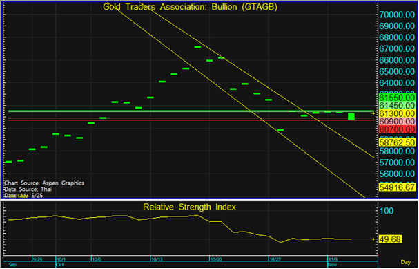 ราคาทองในประเทศมีการแกว่งตัวขึ้นลงตามทองโลกและค่าเงินบาท จึงแนะนำทยอยซื้อสะสมตามแนวรับที่ระดับ 60,900 และขายทำกำไรตามแนวต้านที่ 61,450 บาท แต่หากราคาหลุดแนวรับที่ 60,700 บาท แนะนำขายตัดขาดทุน