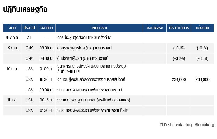 ราคาทองโลกยังคง Sideway คาดการณ์ตลาดยังคงจับตานาย สก็อตต์ เบสเซนต์ รมว.คลังสหรัฐฯ หลังเปิดเผยว่าจะเข้าพบกับคู่เจรจาจากจีนในอีกไม่กี่สัปดาห์ข้างหน้า เพื่อเดินหน้าหารือเรื่องการค้าและประเด็นอื่น ๆ หลังจากทั้งสองชาติตกลงสงบศึกสงครามการค้าในการเจรจาที่นครเจนีวาและกรุงลอนดอน เนื่องจากกรอบการทำงานระหว่างสหรัฐฯ-จีนยังคงไม่ครอบคลุมและยังมีปัญหาซับซ้อนที่ต้องได้รับการแก้ไข ในขณะที่หนังสือพิมพ์พีเพิลส์เดลี่ (People’s Daily) ของทางการจีนได้เผยแพร่บทความเตือนไม่ให้สหรัฐฯ จุดชนวนความตึงเครียดทางการค้าให้ปะทุขึ้นอีกครั้งด้วยการเรียกเก็บภาษีสินค้านำเข้าจากจีนในเดือนหน้า อีกทั้งยังได้เตือนว่าจะตอบโต้ประเทศใดก็ตามที่ทำข้อตกลงกับสหรัฐฯ เพื่อตัดจีนออกจากห่วงโซ่อุปทาน และในการประชุม BRICS ที่ผ่านมาได้แสดงความกังวลอย่างจริงจังเกี่ยวกับการเพิ่มขึ้นของมาตรการภาษีศุลกากรฝ่ายเดียวซึ่งเป็นสิ่งที่ไม่สอดคล้องกับกฎของ WTO