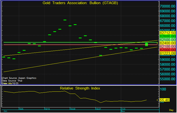ราคาทองในประเทศมีการฟื้นตัวขึ้นตามทองโลก ในขณะที่ค่าเงินบาทแข็งค่า จึงแนะนำทยอยขายตามแนวต้านที่ระดับ 62,500 และทยอยซื้อตามแนวรับที่ 62,100 บาท แต่หากราคาหลุดแนวรับที่ 62,000 บาท ลงไป แนะนำขายตัดขาดทุน