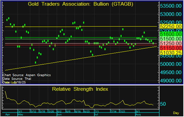 ราคาทองในประเทศอยู่ในระยะ Sideway ตามทองโลก ในขณะที่ค่าเงินบาทยังคงแกว่งตัว จึงแนะนำเข้าซื้อสะสมแนวรับที่ระดับ 51,250 บาท และขายทำกำไรหากราคาทดสอบแนวต้านที่ 51,500 บาท แต่หากราคาหลุดแนวรับที่ 51,150 บาท ลงไป แนะนำขายตัดขาดทุน