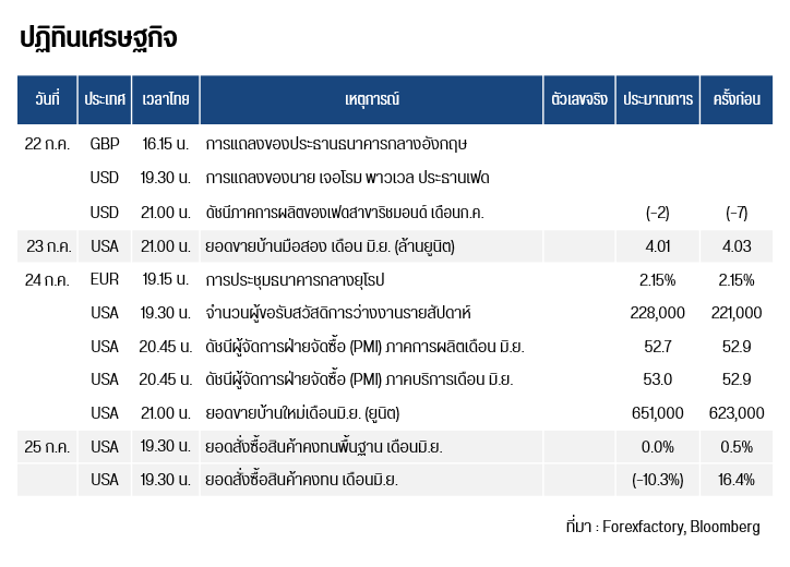 คืนนี้ เวลา 19.30 น. สหรัฐฯ มีการแถลงของนาย เจอโรม พาวเวล ประธานเฟด และ เวลา 21.00 น.ประกาศตัวเลขดัชนีภาคการผลิตของเฟดสาขาริชมอนด์ เดือนก.ค.
