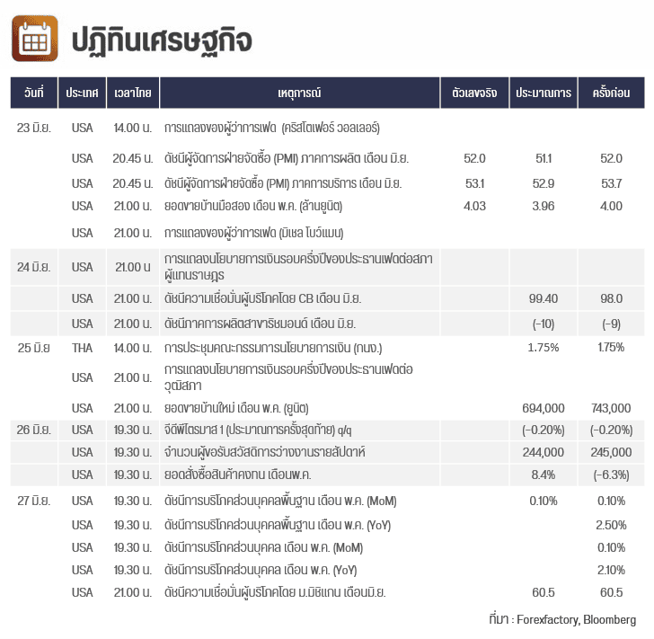 คืนนี้ เวลา 21.00น. สหรัฐฯ มีการประกาศตัวเลขดัชนีความเชื่อมั่นผู้บริโภคโดย CB เดือน มิ.ย. และ