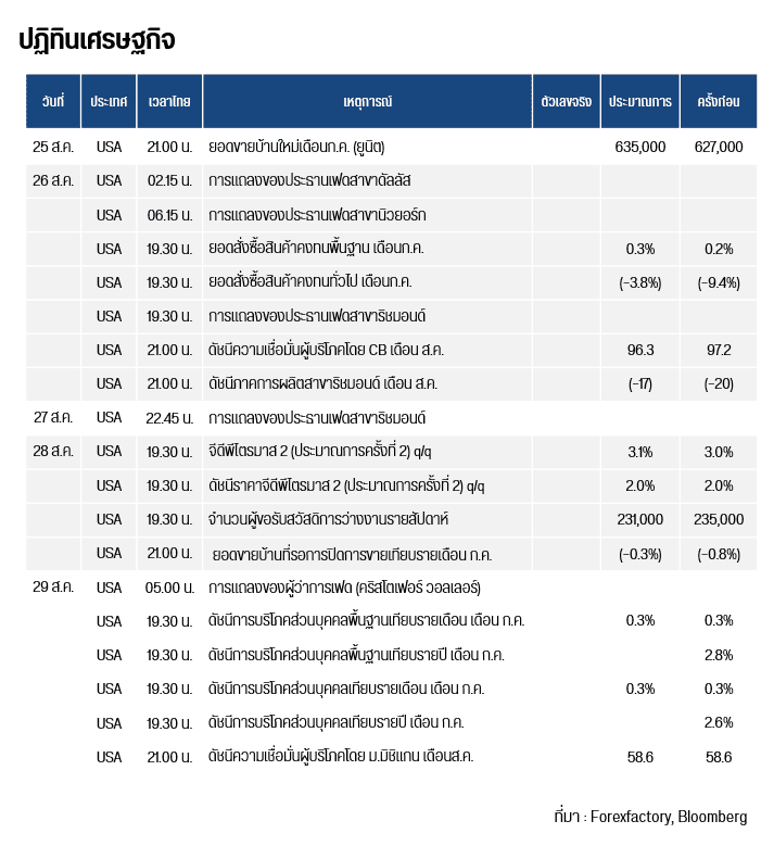 ทองโลกมีการปรับฐานลงระยะสั้น จากการที่ดัชนีเงินดอลลาร์ (DXY) และบอนด์ยีลด์อายุ 10 ปีสหรัฐฯ ในระยะสั้นฟื้นตัวขึ้น สืบเนื่องมาจากตลาดยังคงกังวลถึงความไม่แน่นอนของนายเจอโรม พาวเวล ประธานเฟด ที่ได้แสดงท่าทีเปิดช่องทางให้เฟดลดดอกเบี้ย 0.25% ในเดือนก.ย. และ ธ.ค. แต่นักวิเคราะห์จากหลายสถาบัน อาทิเช่น Bank Of America และ Bloomberg strategists ได้คาดการณ์ว่า มีโอกาสที่เฟดอาจตรึงดอกเบี้ยหลังจากลดดอกเบี้ยในเดือน ก.ย.และ ธ.ค. ไปแล้ว จากภาวะเงินเฟ้อที่ทยอยขยายตัวขึ้นเนื่องด้วยภาษีศุลกากรของปธน.ทรัมป์ ซึ่งจากปัจจัยทั้งหมดข้างต้น ส่งผลให้บอนด์ยีลด์สหรัฐฯ และดัชนีเงินดอลลาร์ยังไม่มีทิศทางขาลงที่ชัดเจน และทำให้ทองคำยังไม่สามารถปรับตัวขึ้นได้โดยง่าย อย่างไรก็ตาม ในทางฝั่งสหรัฐฯ –รัสเซียยังคงไม่สามารถหาข้อสรุปสันติภาพระหว่างรัสเซีย – ยูเครนได้ เนื่องจากเงื่อนไขต่างๆ ยังไม่เป็นที่ต้องการของรัสเซีย ในขณะที่ปธน. สี จิ้นผิง ได้เชิญชวนอินเดียเข้าร่วมประชุมองค์การความร่วมมือเซี่ยงไฮ้ (SCO) ที่จีนและรัสเซียเป็นแกนนำ เพื่อยกระดับความสัมพันธ์ทางการทูตของชาติทั้ง 3 ซึ่งอาจทำให้สหรัฐฯ ไม่พอใจในภายหลัง